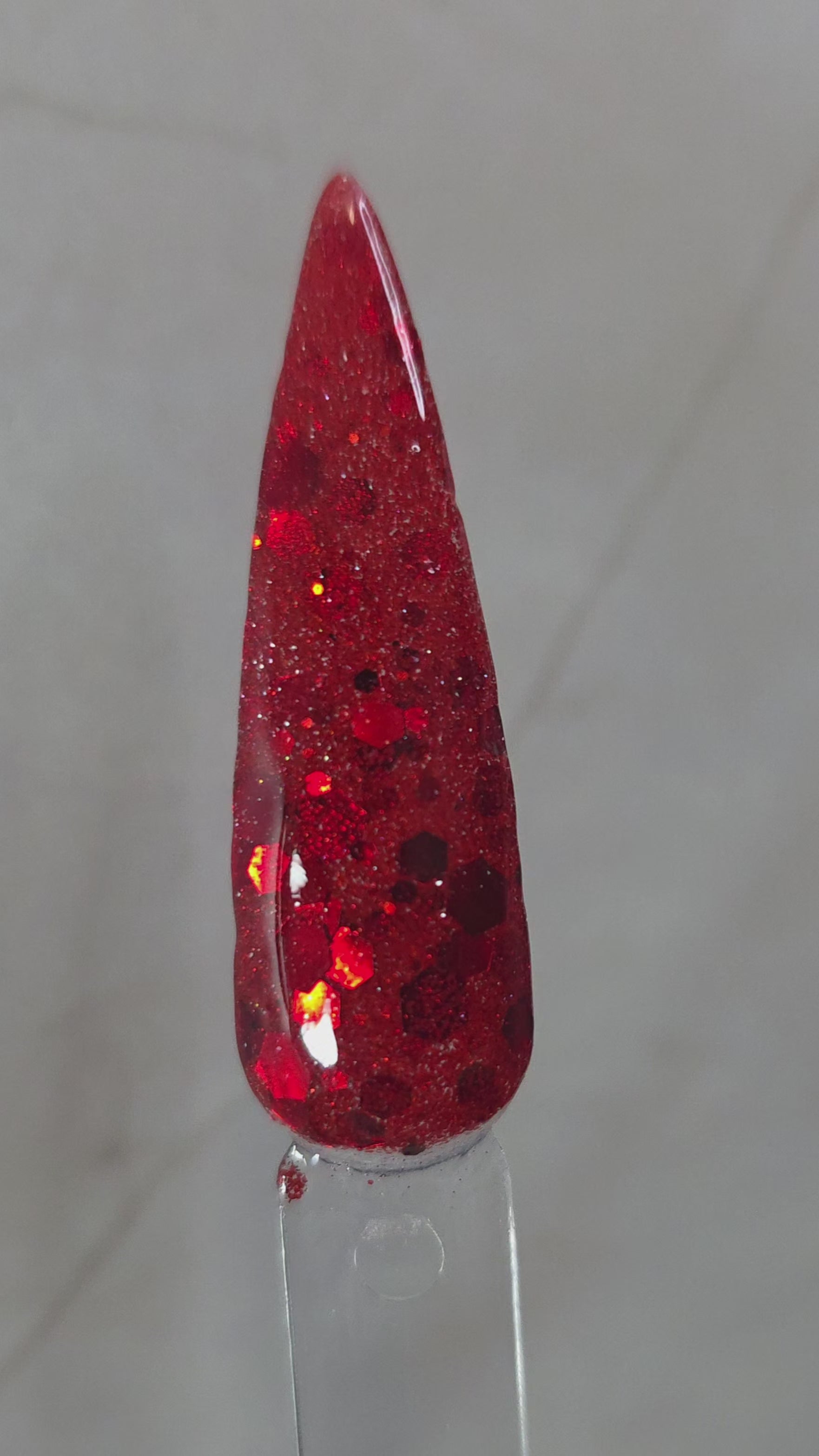 This is a red matte glitter base with red chunky glitter