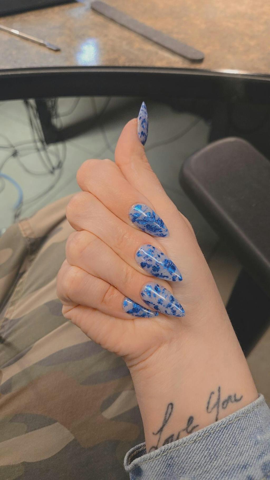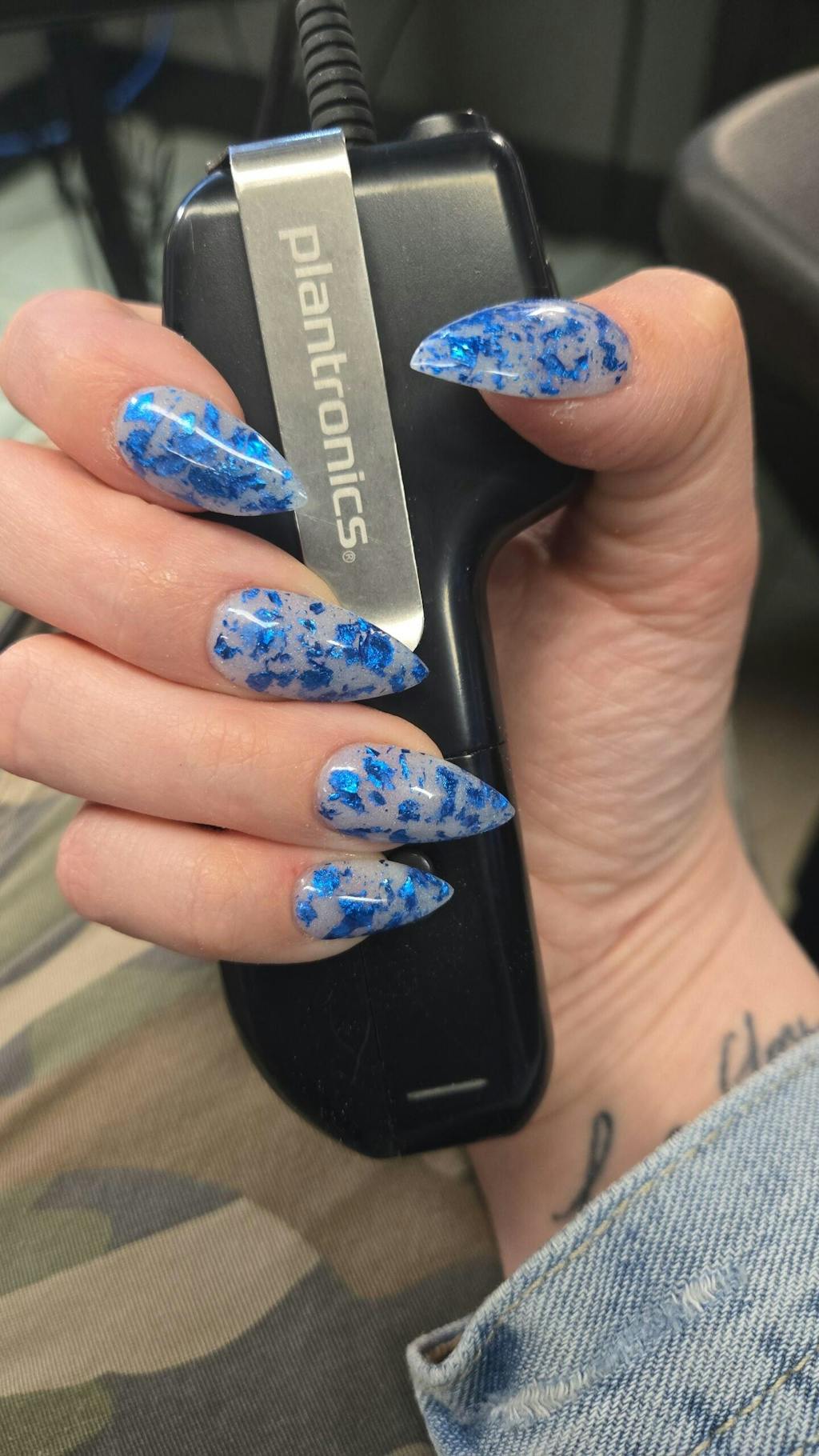 This is a shimmer jelly base with bright blue foils.